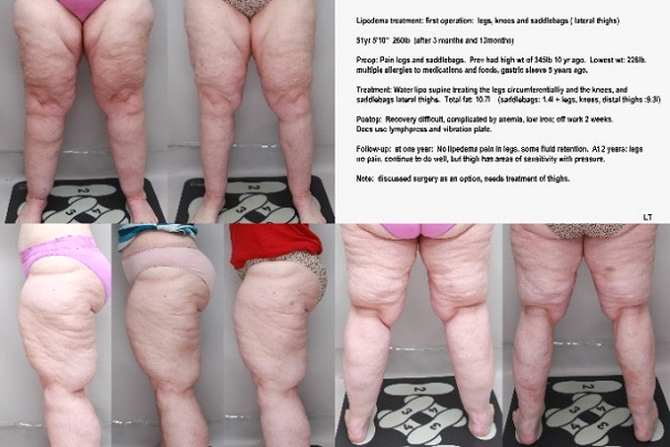 I have read every published study, most from larger German experiences (over 15 years). In 2018, I started to see women with lipedema who wanted treatment with water-jet liposuction. I had a large experience with water-jet liposuction in cosmetic patients (1000 patients since 2011).