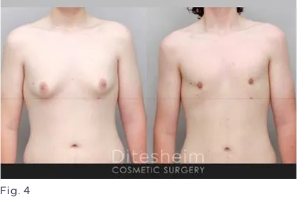 Periareolar Lift: This procedure can remove a limited amount of excess skin and reposition the nipple slightly higher to a more appropriate position. An incision is made around the areola, allowing the surgeon to remove excess skin and reposition the nipple. (Figure 4)