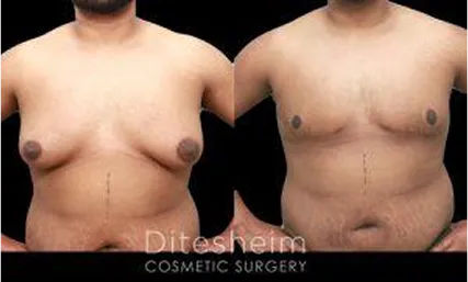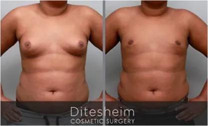 This procedure is typically indicated for males with glandular breast tissue contributing to the appearance of gynecomastia. The nipple position is very close to normal. The chest skin may have normal elasticity or slightly loose.(Figure 1) This is also an option for teens who present with gynecomastia and weight loss who have retained skin elasticity or have not completed growth. (Figure 1)